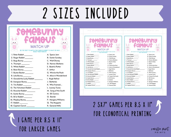 Easter Somebunny Famous Game Famous Rabbit Match Up Easter Etsy